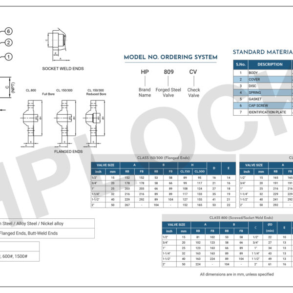 Forged Steel Check valve HP809CV- Dövme Çekvalf